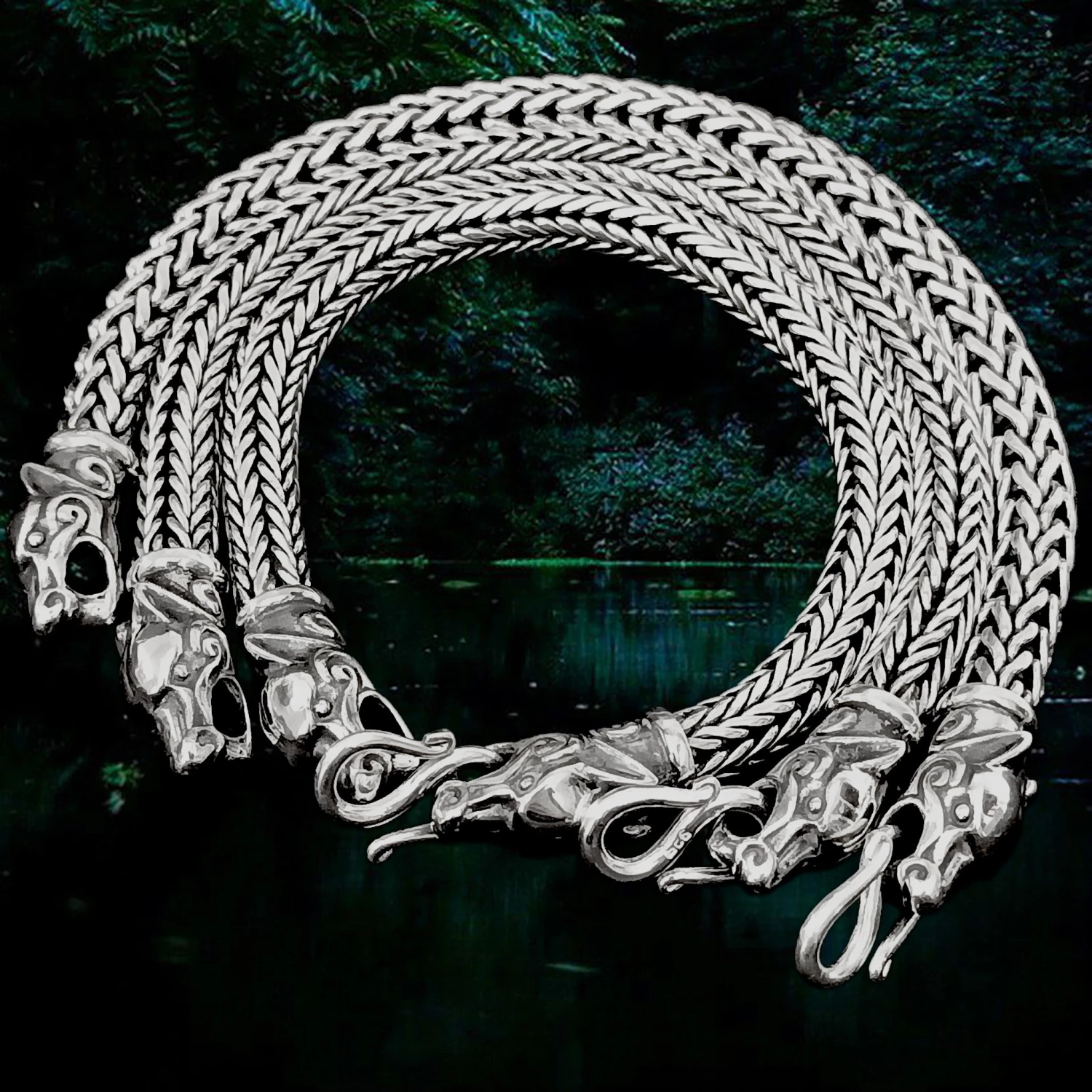 – Our classic snake chain bracelet with ferocious wolf head terminals.