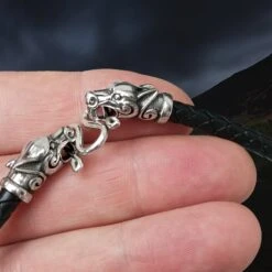 Our leather necklaces are made from braided leather cords with either Gotlandic dragon, Icelandic wolf, or ferocious wolf head terminals. They come in either 5mm or 8mm widths in a choice of lengths.