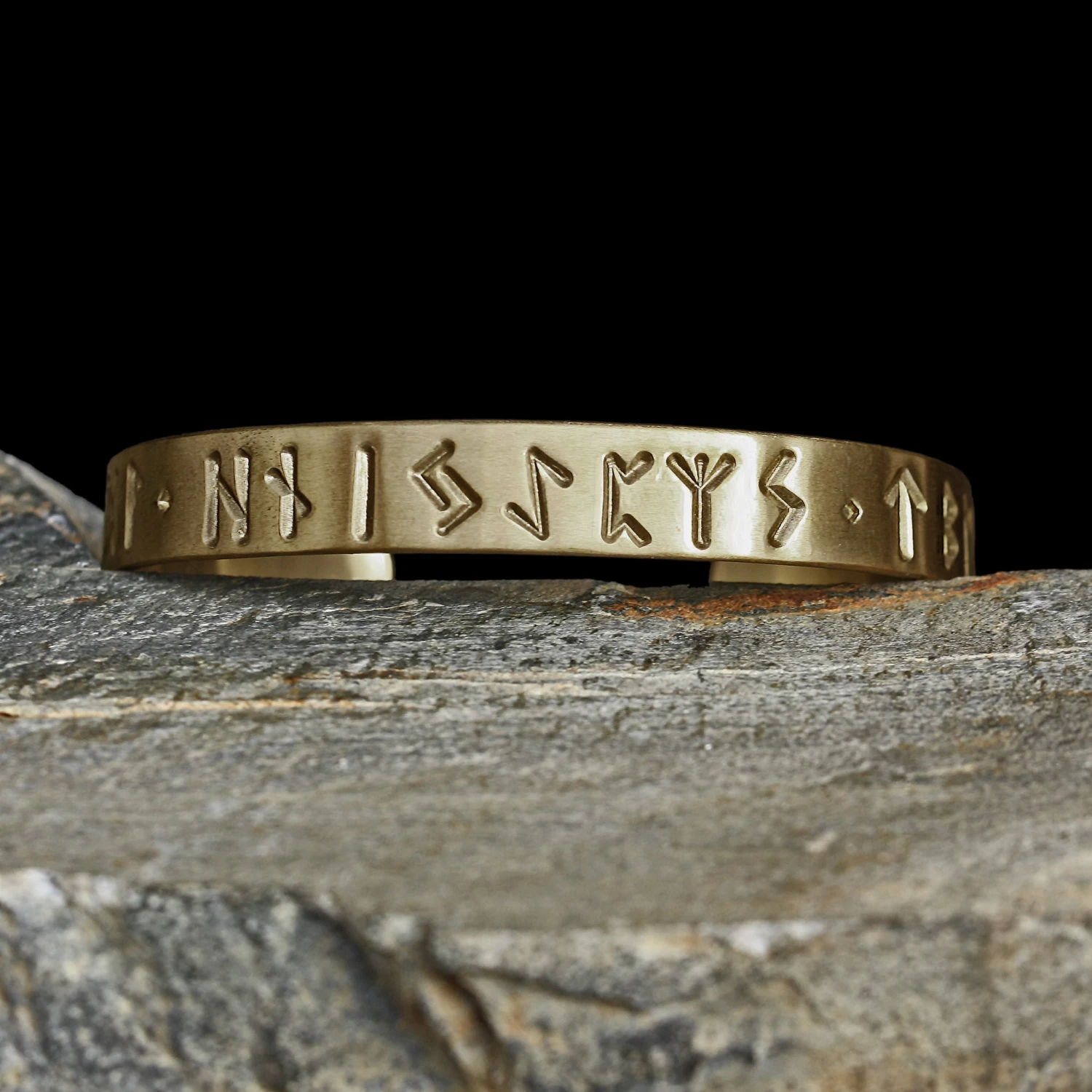 Viking Bracelet in Solid Brass with Runic Inscription.