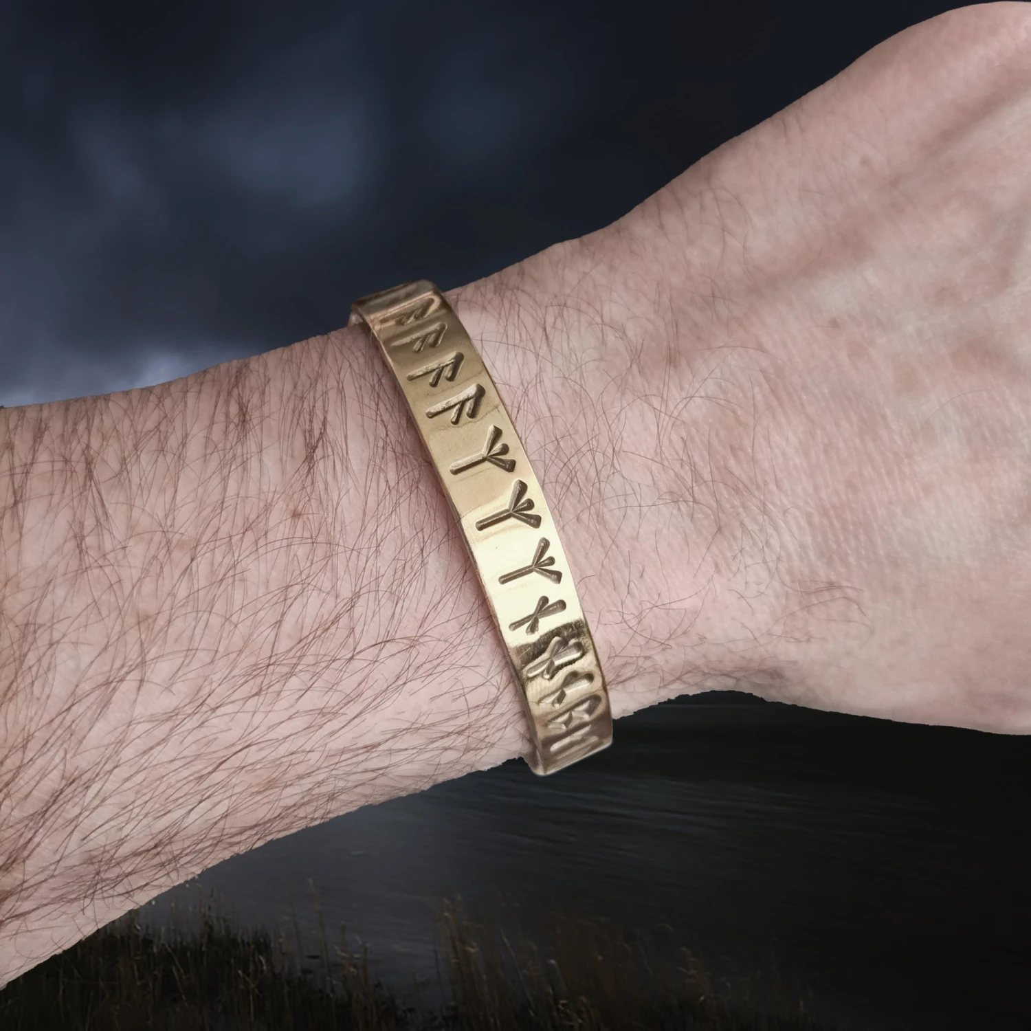 Runic Dark Age Bracelet in Solid Brass with Runic Inscription from Lindholm.