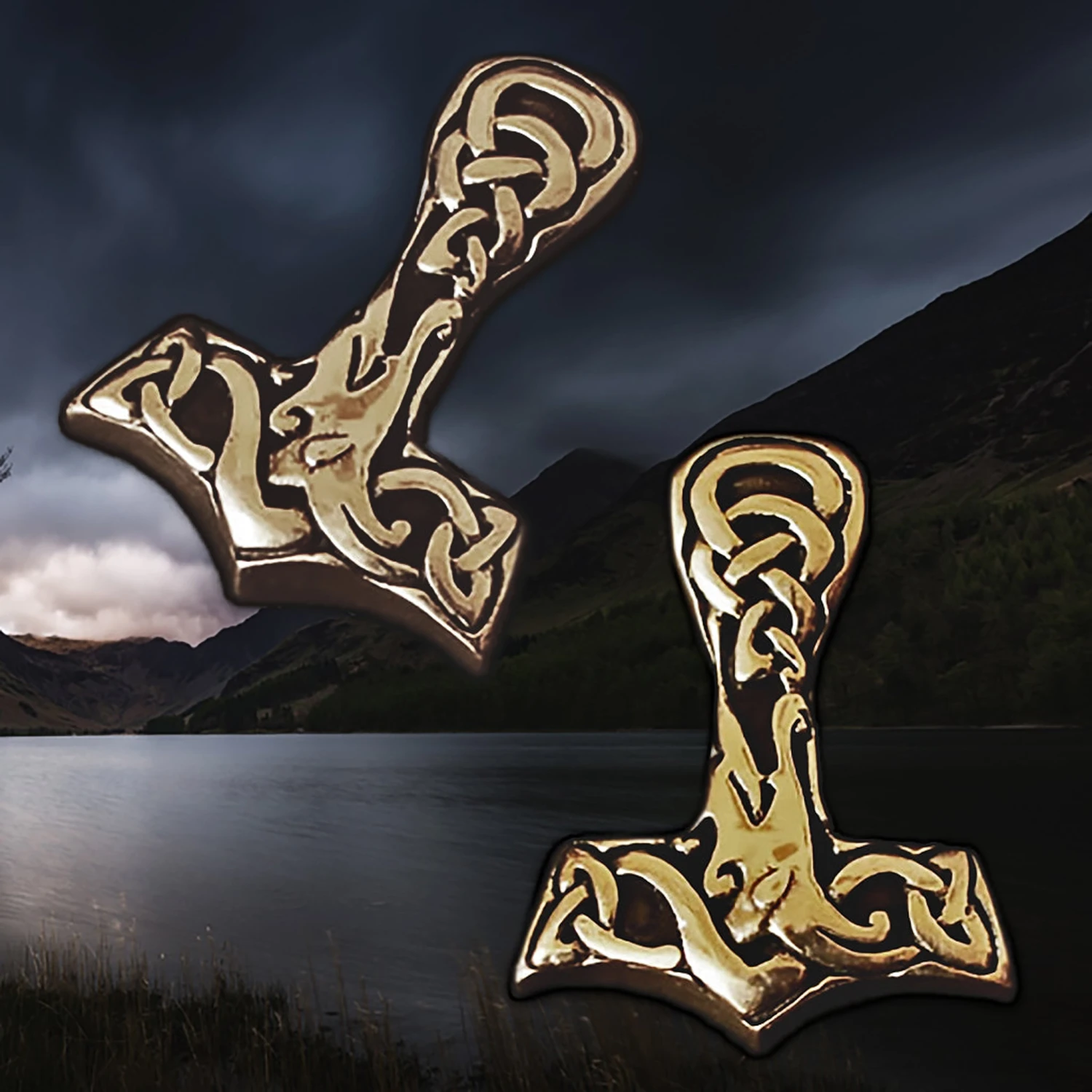 Chunky Thor’s Hammer Viking Style Pendant with Interlaced Knotwork Designs on Both Sides.