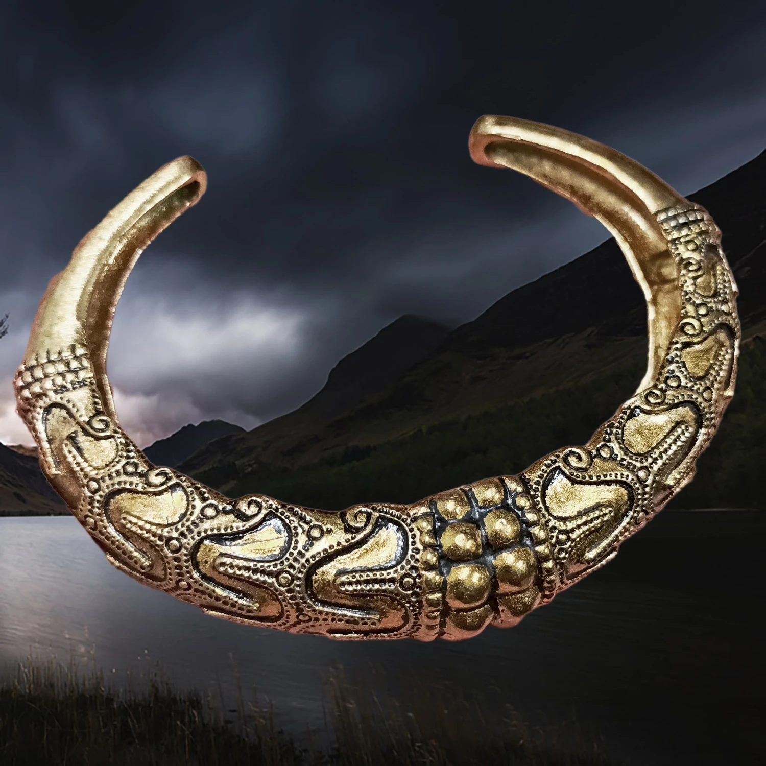 Viking bracelets have been found all over Europe and this one is from Orupgård, Falster, Denmark; which dates back to the 10th century. The original is in the national museum of Denmark in Copenhagen.
