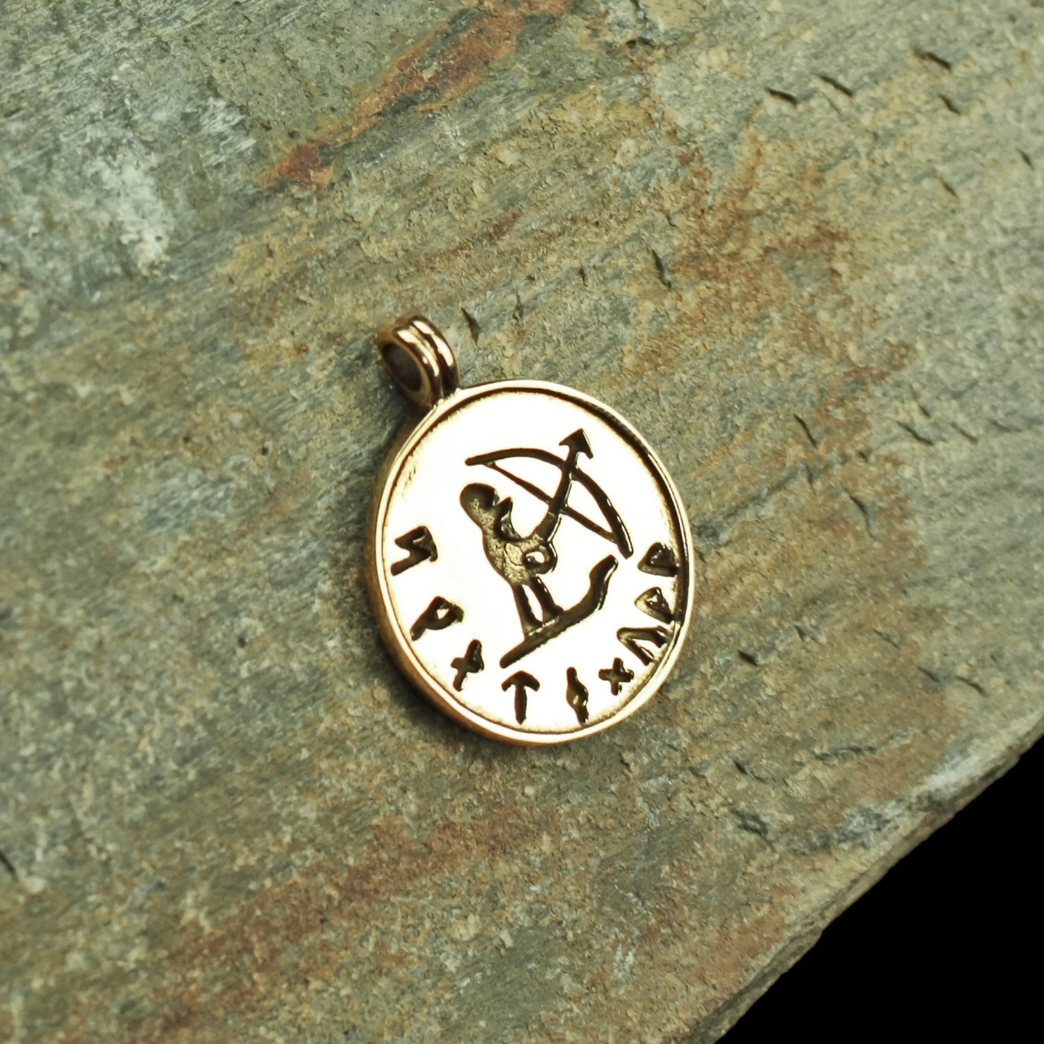 Viking pendant of the Norse gods of winter and hunting – Skadi Ull (Ullr), cast in solid bronze.