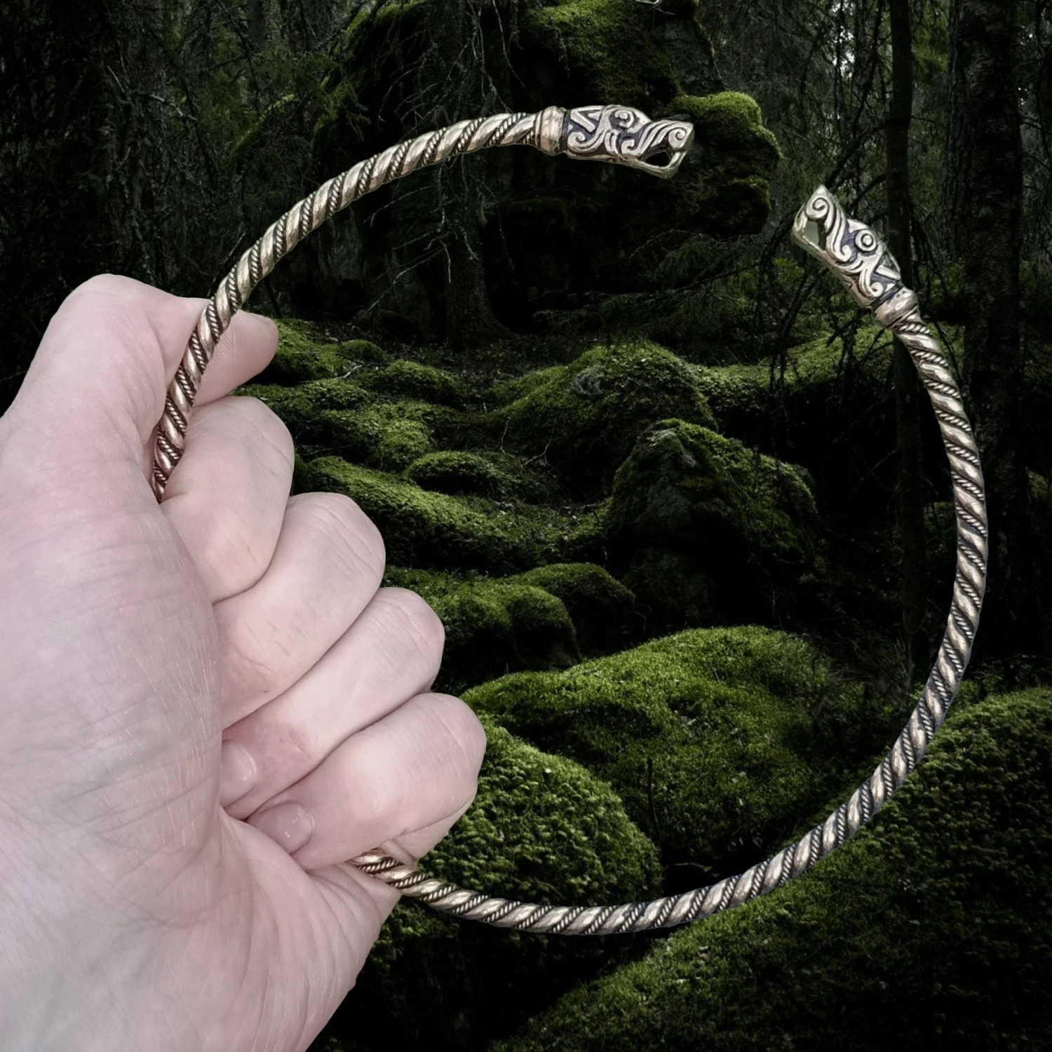 Twisted Neck Ring with Gotland Dragon Heads in Solid Bronze