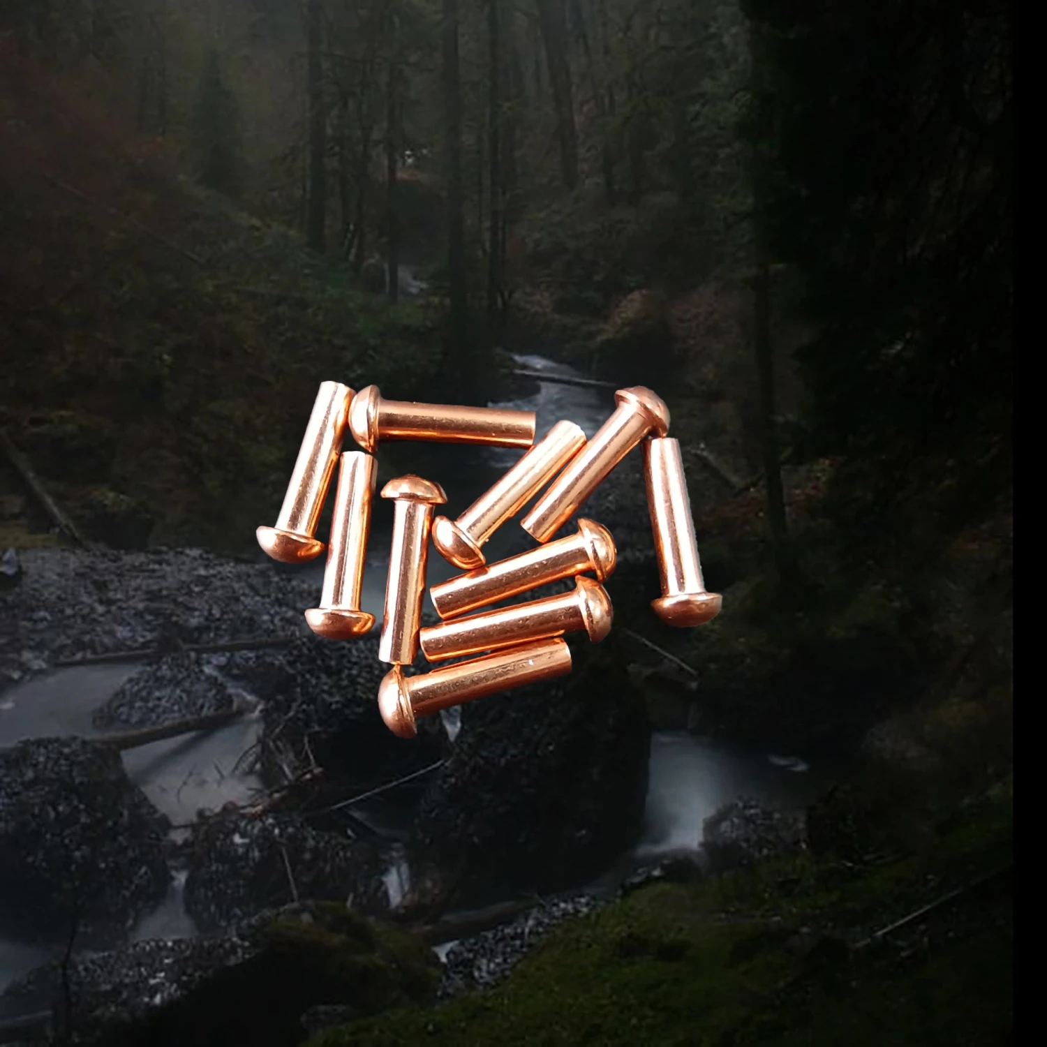 Copper Rivets with Dome Heads – 3.2mm (1/8 inch) Thick, 12.5mm (1/2 inch) Long.