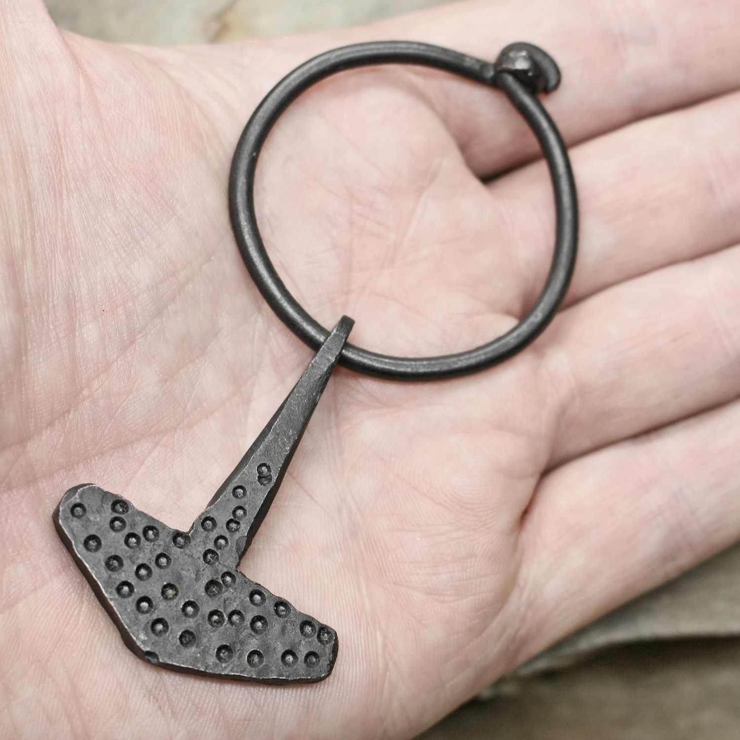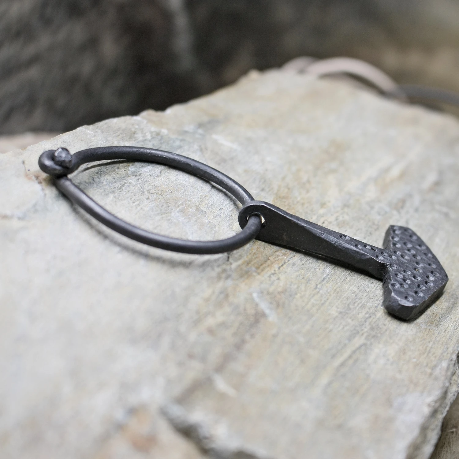 Hand-Forged Iron Thor’s Hammer Pendant Replica on Hand-Forged Iron Ring.