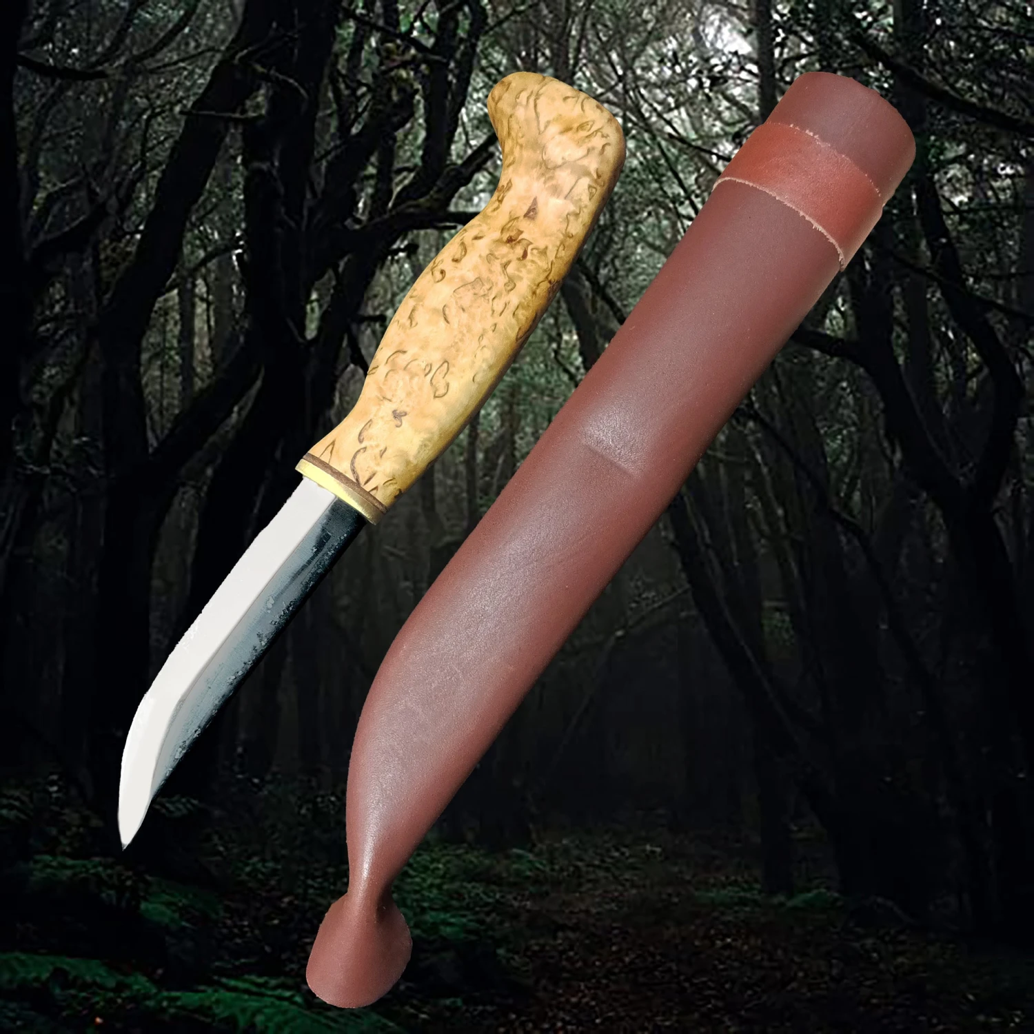 Finnish Hunting Knife with Carbon Steel Blade & Leather Sheath.