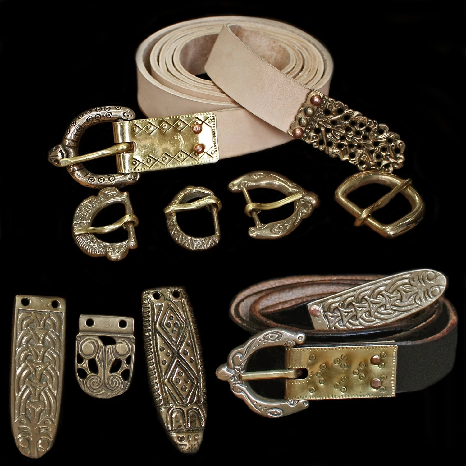 Our authentic Viking / Saxon belts are handmade to order from tough 3-4mm leather cow hide and come complete with an authentic replica bronze buckle, strap end & a choice of buckle plates. Belt lengths depend on the stock leather sheets we have as each belt is hand-cut, edged, waxed & assembled by us.
