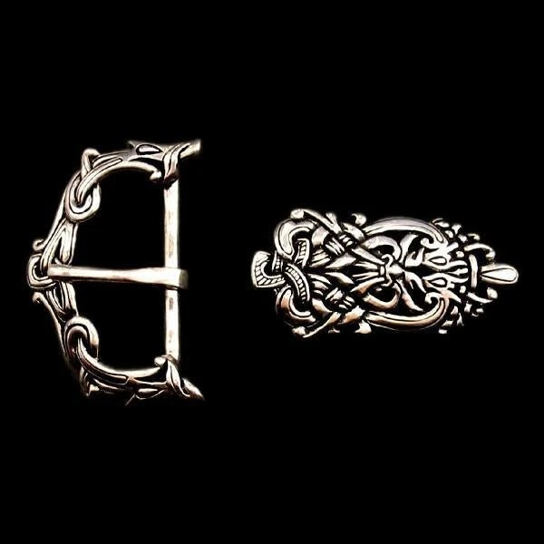 An expensive and richly decorated belt was an expression of status in Viking times. These belts are of the highest possible quality, truly an expression of high status. Each set is copied from an original find and consists of a buckle, a strap end and sometimes a slider. They are cast by lost wax process to the finest quality castings in solid bronze, so no expense is spared and each set is heavy and chunky!