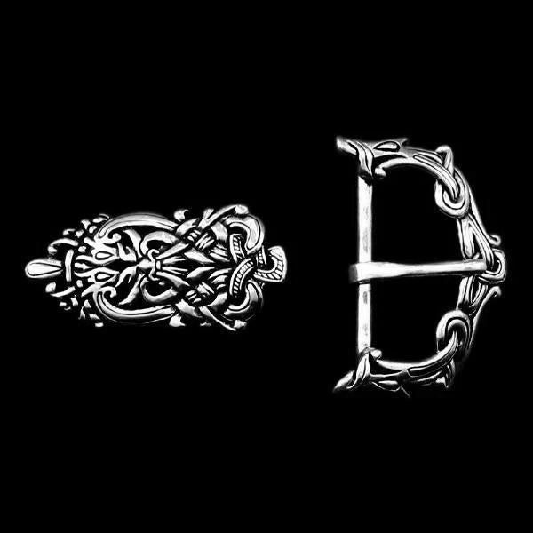 An expensive and richly decorated belt was an expression of status in Viking times. These belts are of the highest possible quality, truly an expression of high status. Each set is copied from an original find and consists of a buckle, a strap end and sometimes a slider. They are cast by lost wax process to the finest quality castings in solid sterling silver, so no expense is spared and each set is heavy and chunky!