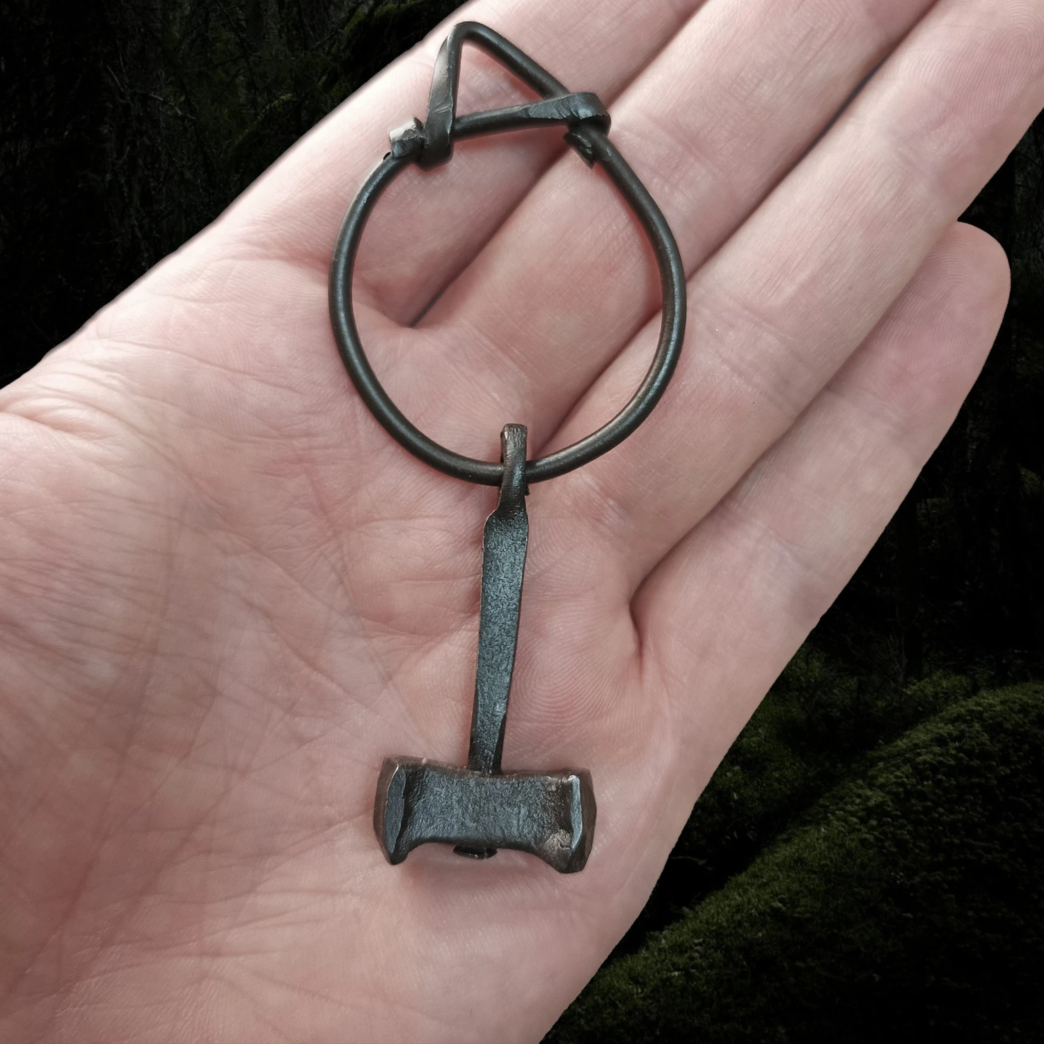 Large Hand-Forged Replica Viking Iron Thor’s Hammer Pendant on Hand-Forged Iron Ring.