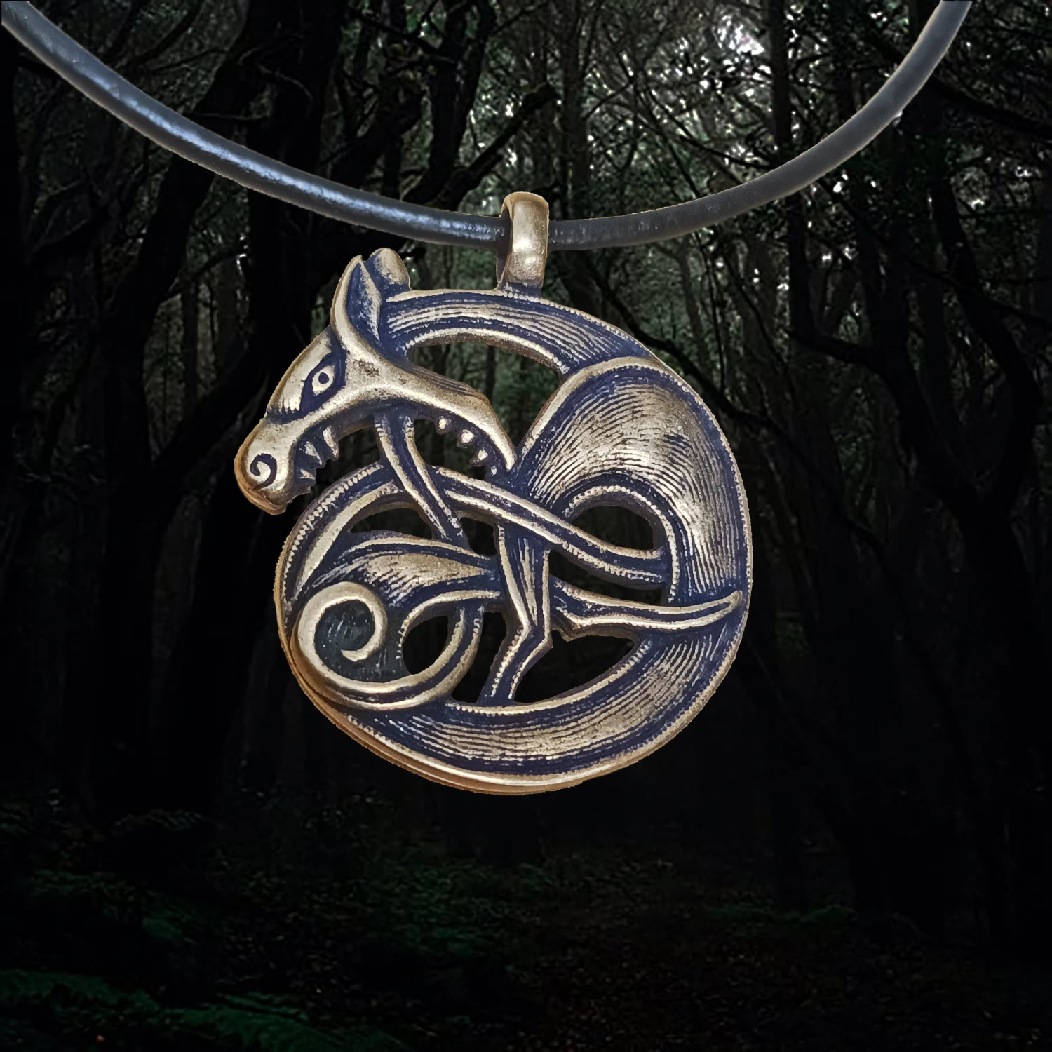 – Bronze Viking pendant with Fenrir wolf design front and back.