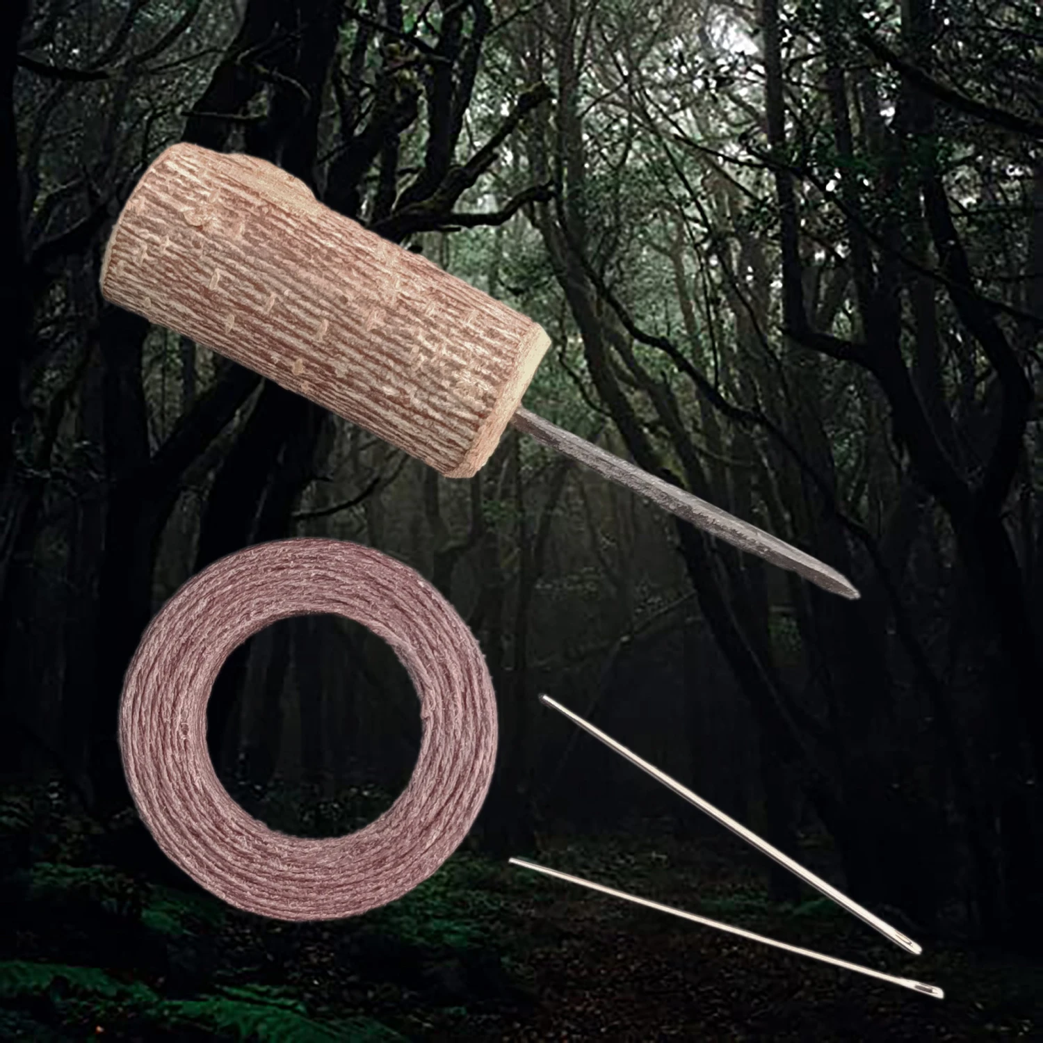 Complete Viking Age Leather Sewing Kit – Birch Wood Handle Awl, Steel Harness Needles & Waxed Linen Thread – With or Without Iron Snips.