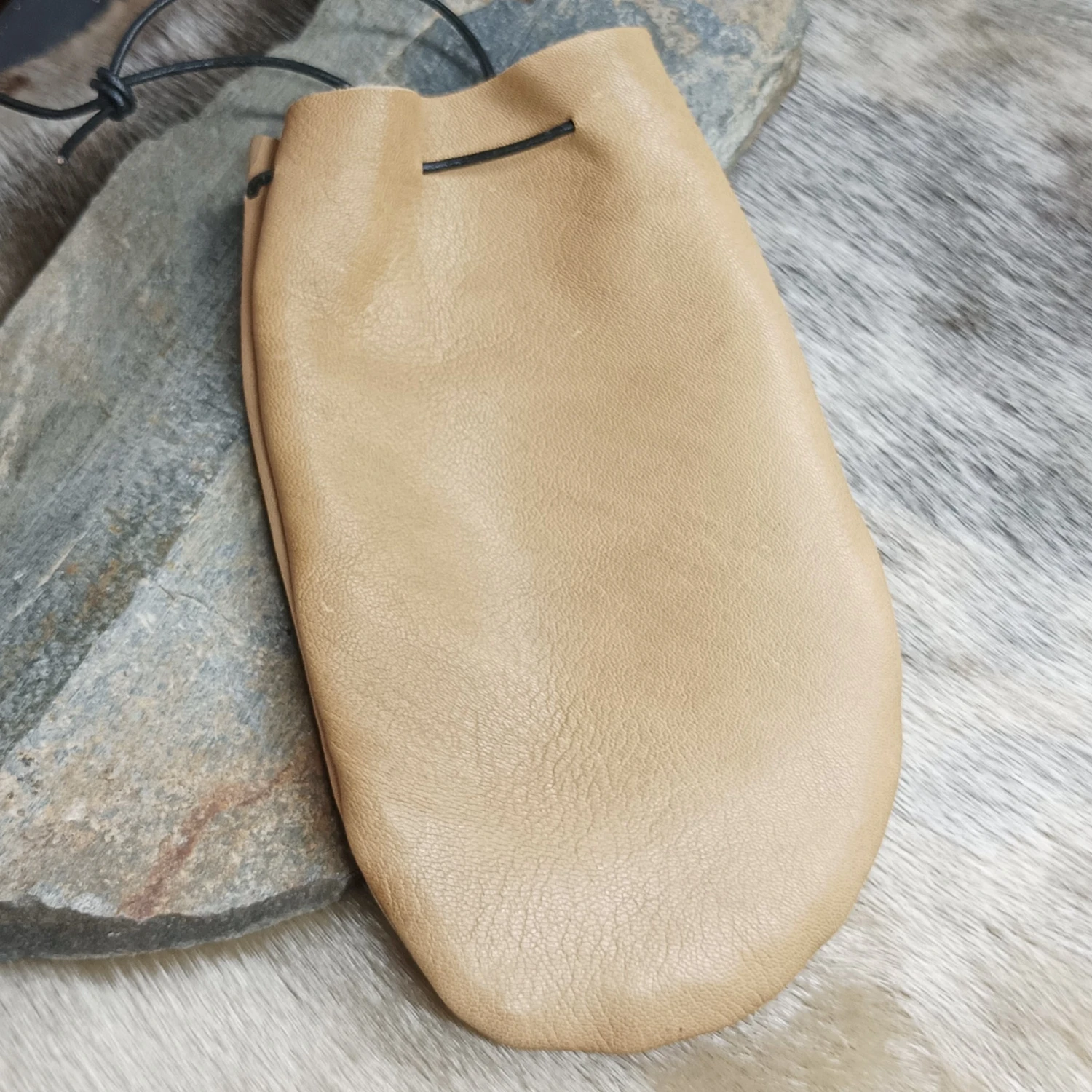 Light-Tan Leather Viking Pouch with Leather Drawstring.