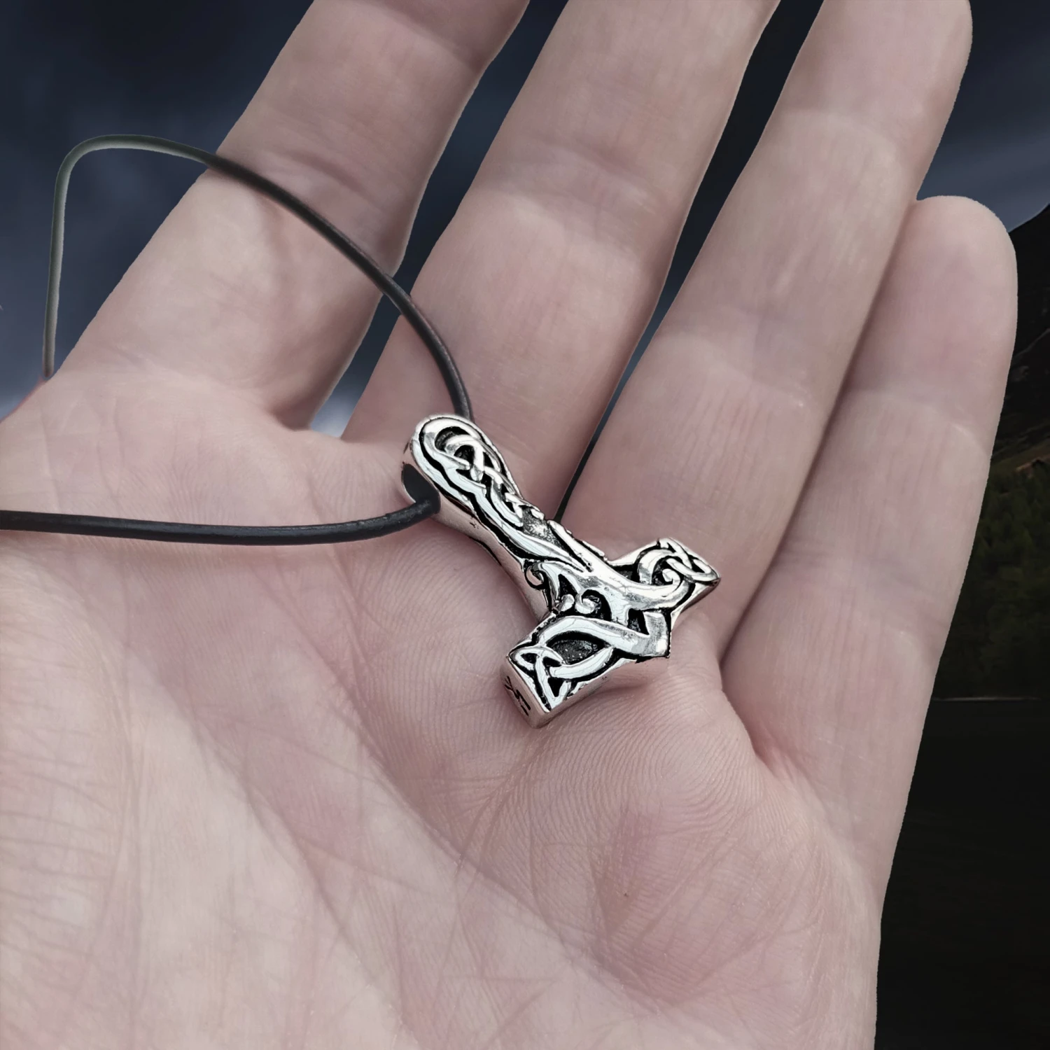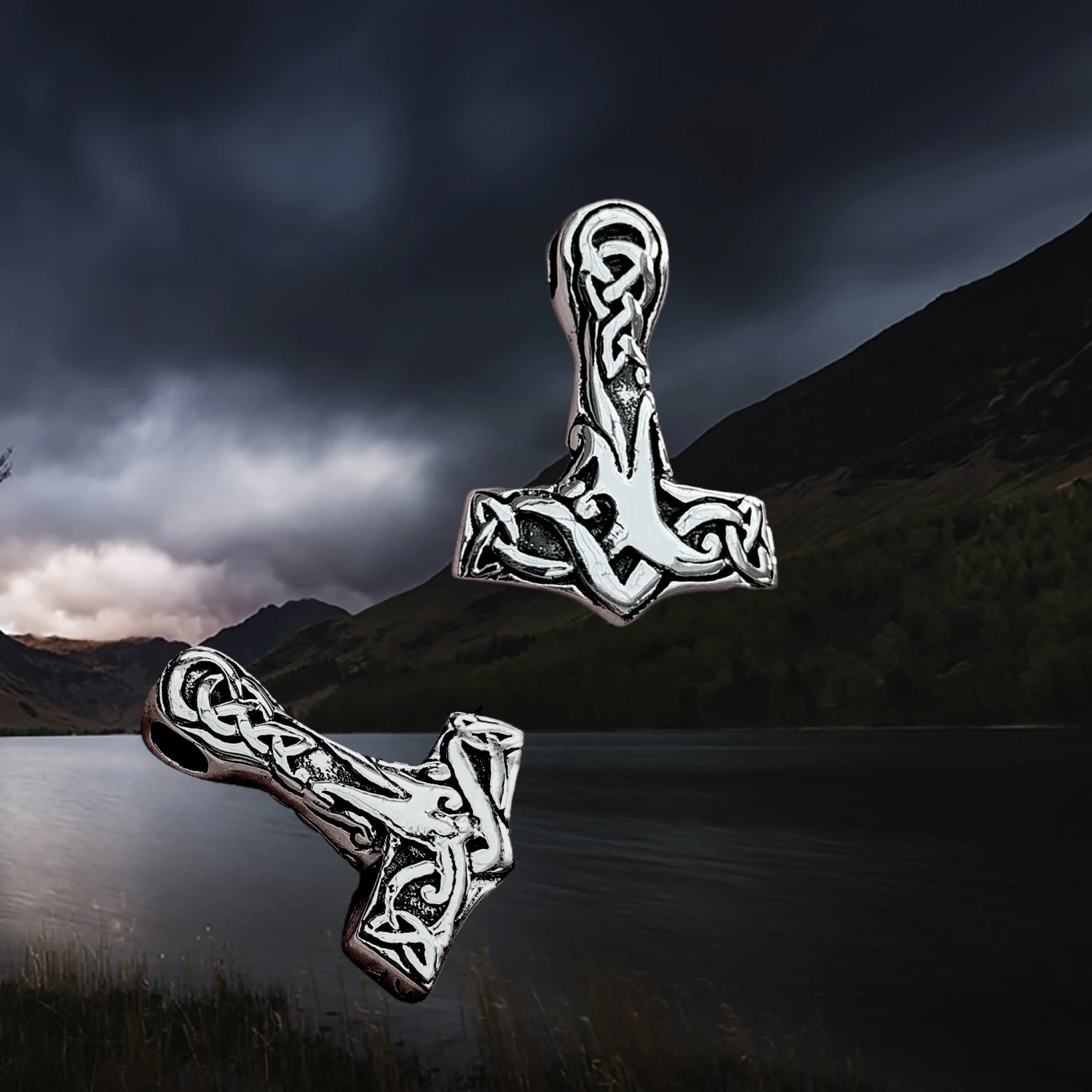 Medium Sized 925 Sterling Silver Version of our Interlace Thor’s Hammer Pendant.