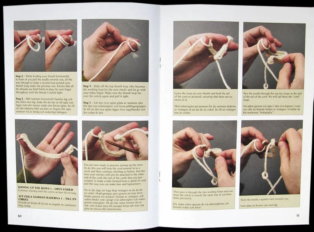 Called Nålbindning in the native Swedish, it is also known in English as nalbinding, nalebinding, nalbindning, naalbinding, naalebinding or needle binding. Nalbinding is an ancient technique used to produce hats, socks, mittens and other woolen goods using a single short needle and lengths of woolen yarn. Although later superceded by knitting, a technique that uses 2 needles instead of one, nålbindning produces garments of a superior quality with stitches that do not run if snagged and a weave that is more dense and therefore easier to felt, providing maximum protection from cold or moisture. It is for this reason that the nalbinding technique was still used until very recently in some parts of Scandinavia.