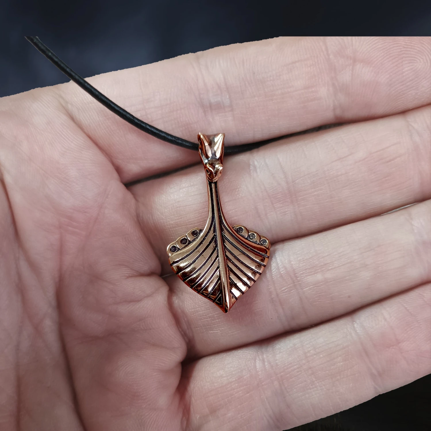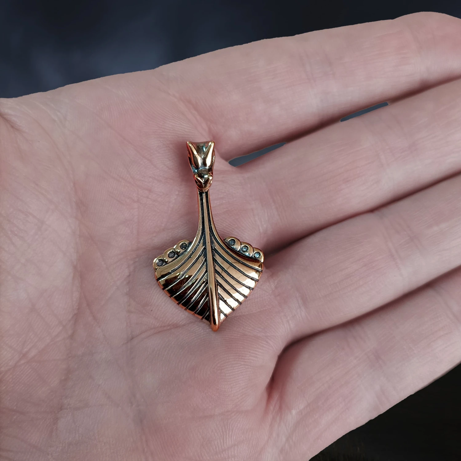 Replica Oseberg Viking Ship Pendant in Bronze.