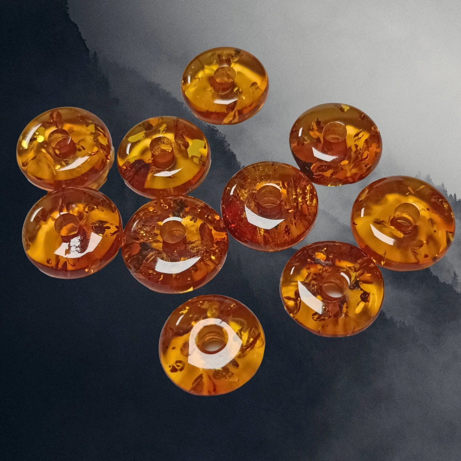 Polished Baltic Amber Viking Bead with a Drilled Central Hole.