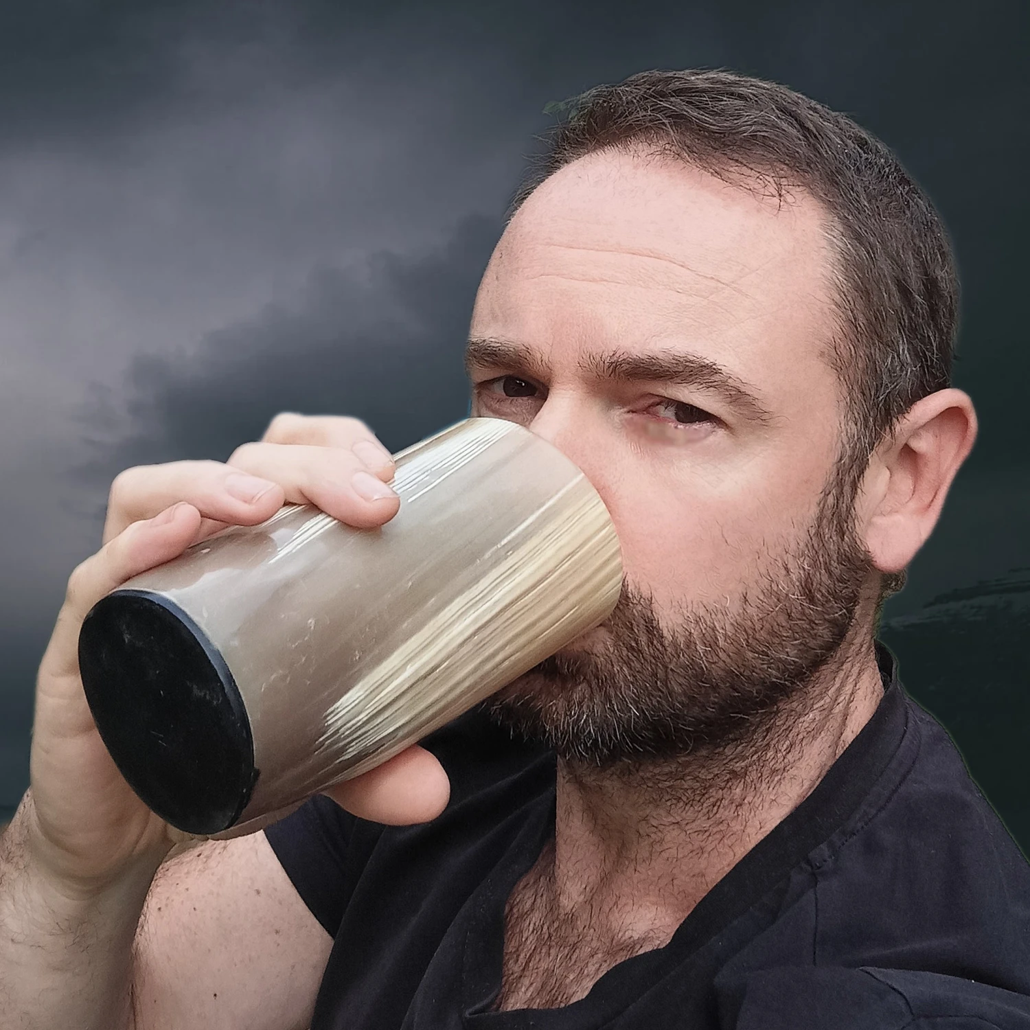 Medium Sized Polished Horn Beer Beaker with Resin Base.