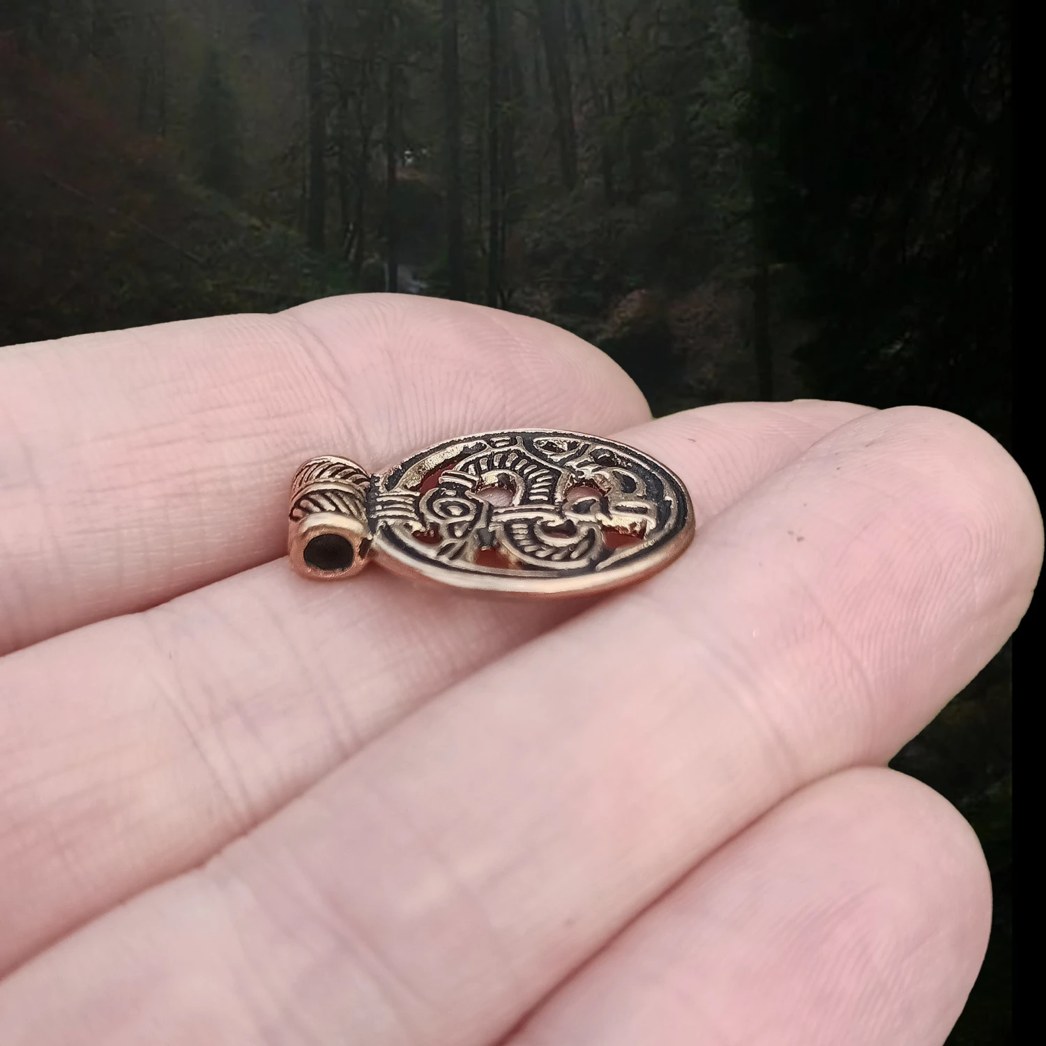 Round Flat Viking Dragon Pendant Replica in Bronze or Silver.