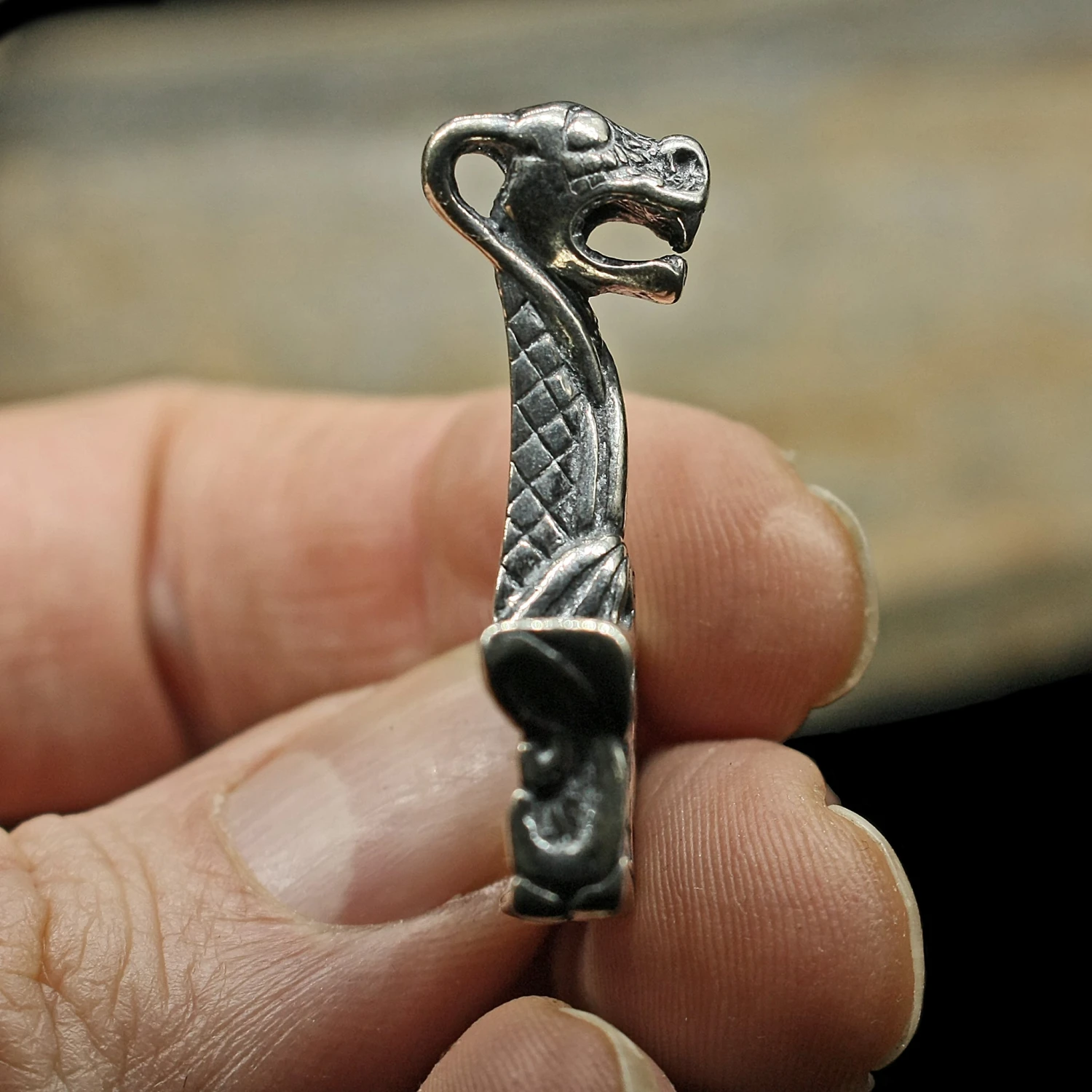Sterling Silver Thor’s Hammer Pendant Based on the Oseberg Ship Dragon Head Finial.