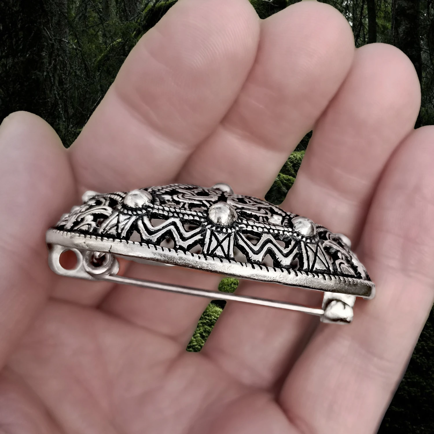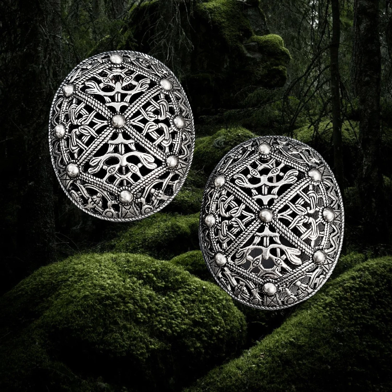 Silver Plated Borre Style Viking Tortoise Brooches with Intricate Openwork Design