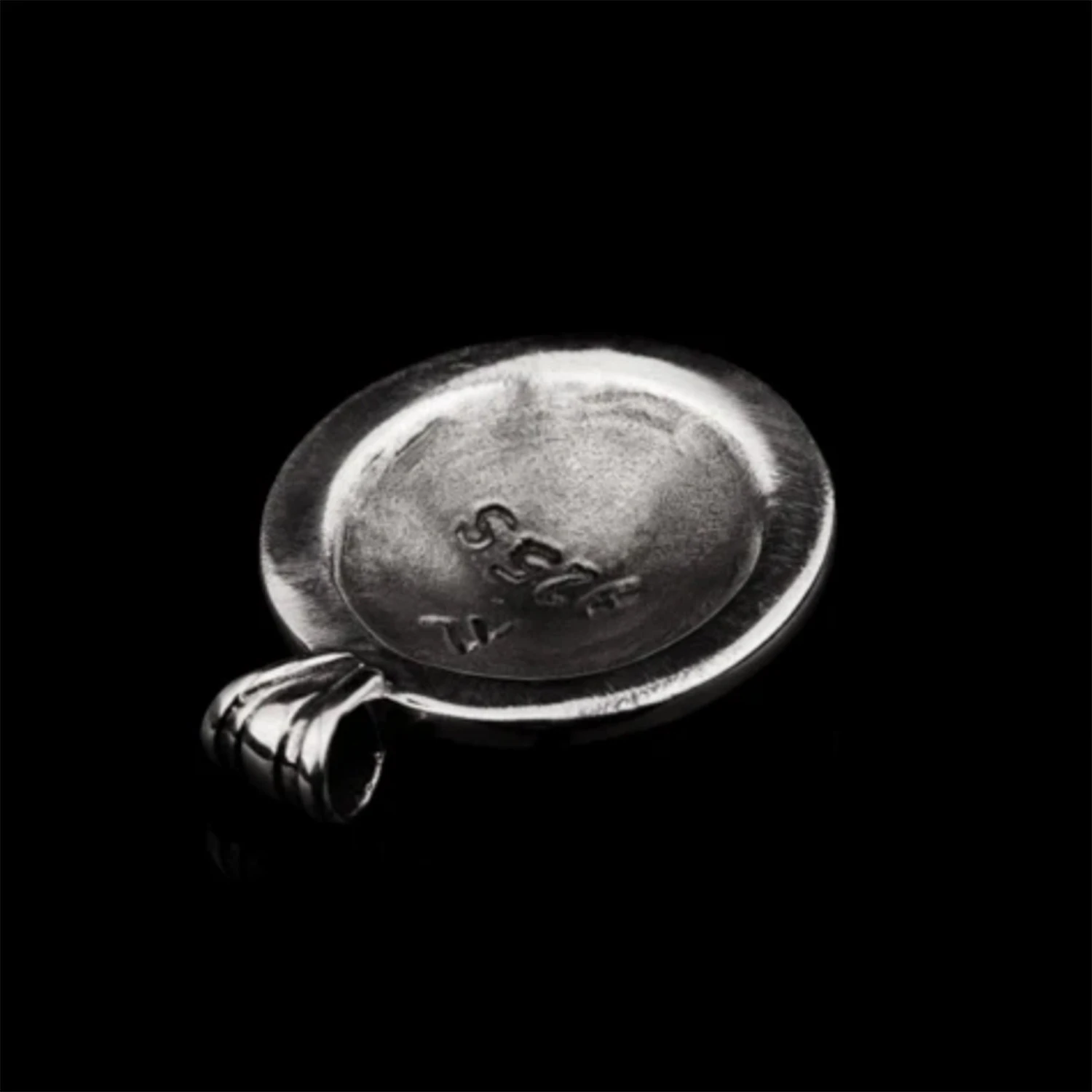 Sterling Silver Round Runic Viking Pendant with Good Luck Inscription.