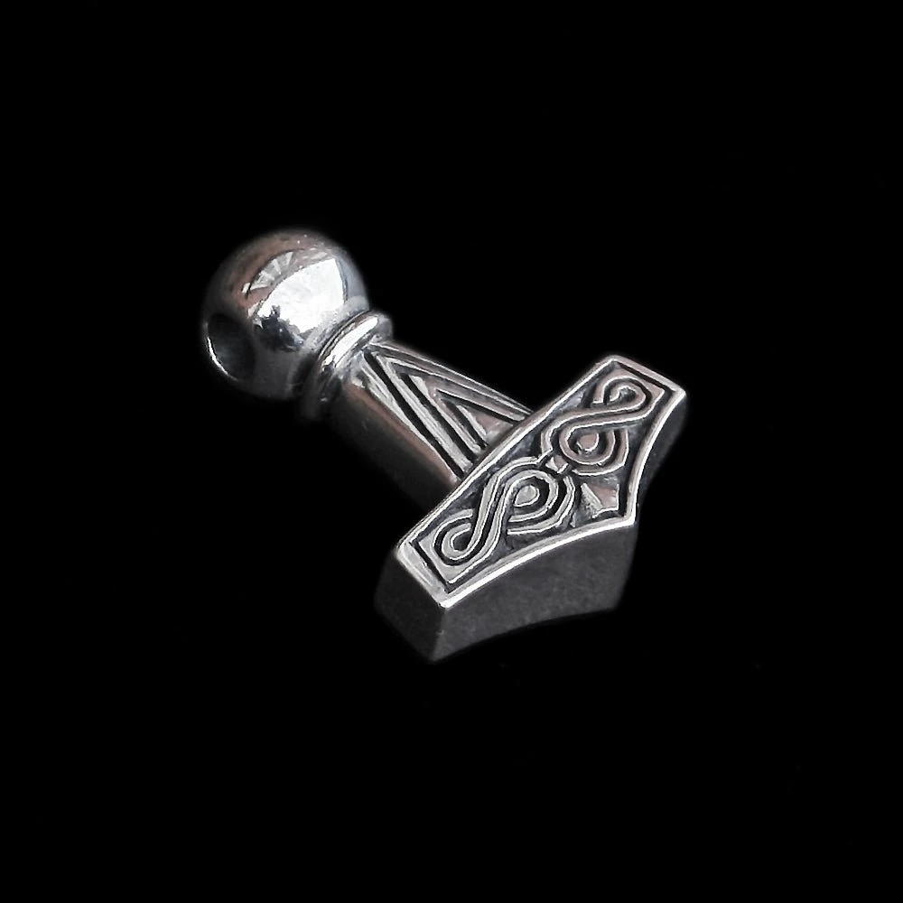 Silver Replica Thor’s Hammer with Runic Inscription & Mask Design