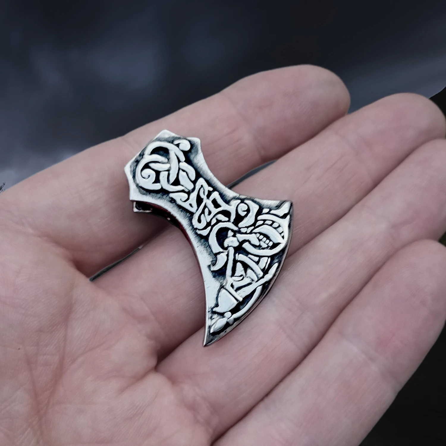 Sterling Silver Viking Axe Head Pendant with Viking Knotwork Design by Kai Uwe Faust.