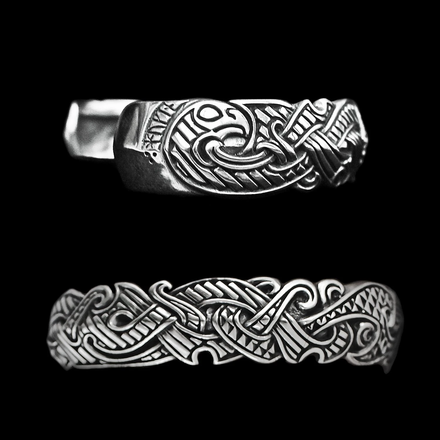 Sterling Silver Viking Inspired Bracelet, Based on Our Viking Raven Ring.