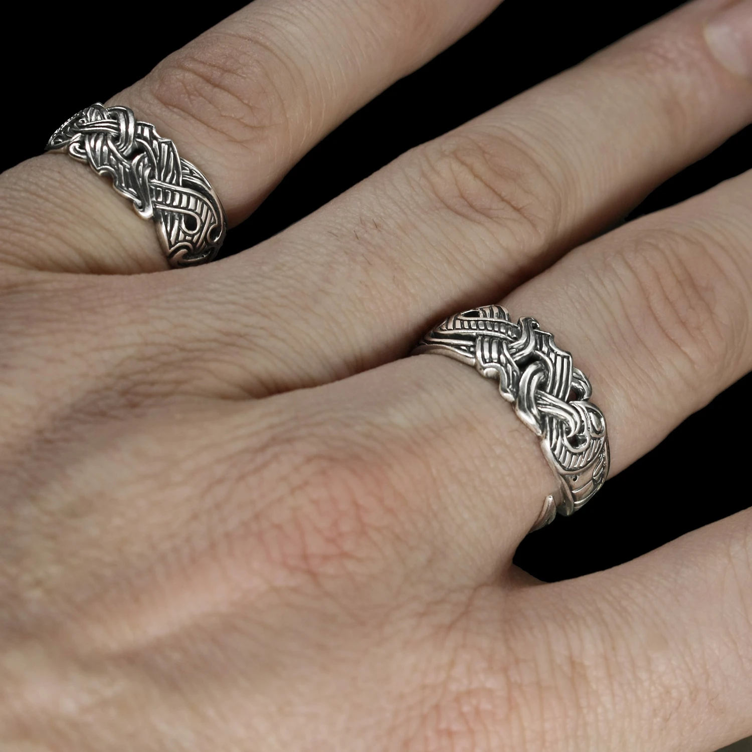 Our Viking raven rings are all made from 925 Sterling silver using the authentic lost wax process. The designs of our raven rings are taken from various Viking artefacts to produce amazing works of art! Most rings are open at the back and so can be adjusted to fit various finger sizes and are suitable for Viking men & women.
