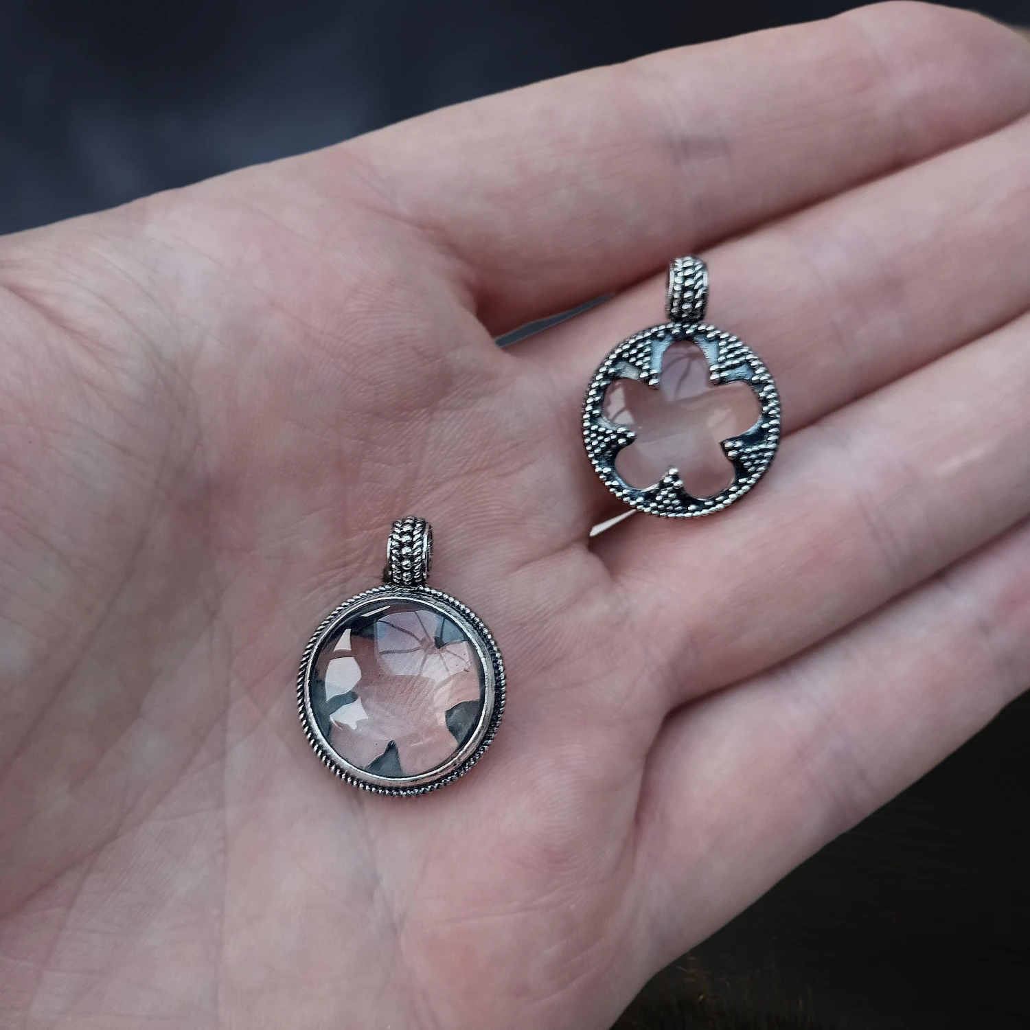 – Pendant width – 17mm (0.7 inch), overall height with hanger – 24mm (0.95 inch).