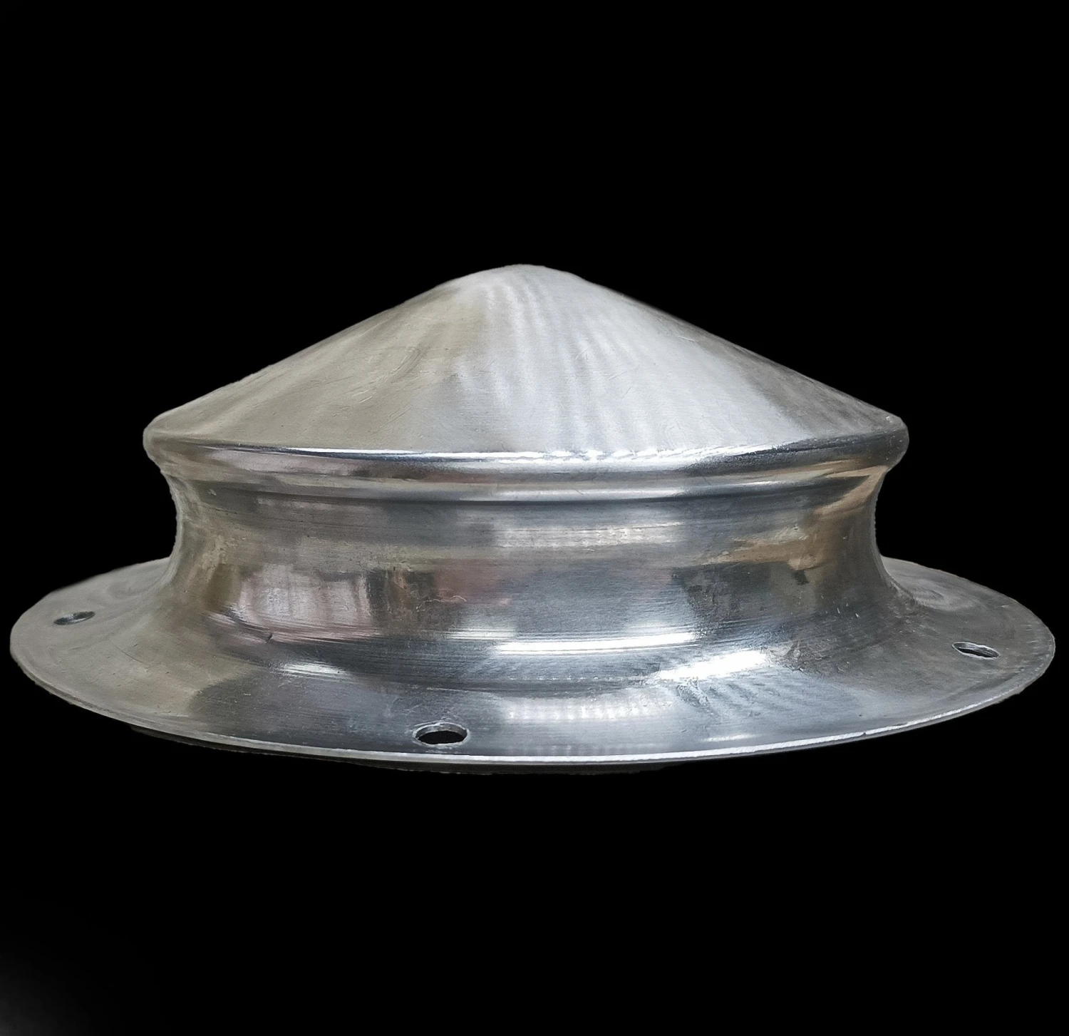 Lightweight Early Germanic Carinated Shield Boss Made From a Single Piece of Spun Steel.