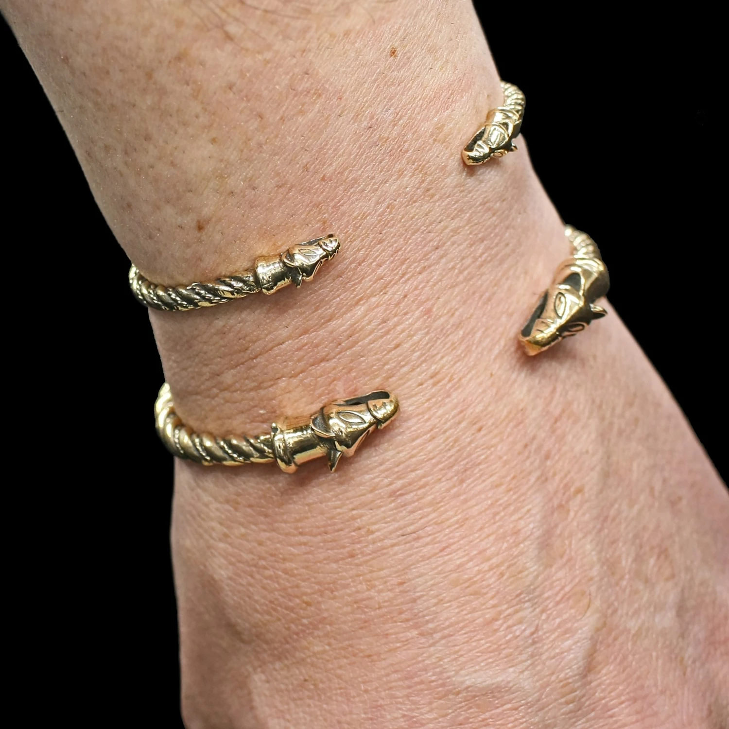 Smaller Bronze Wolf Head Version of the Original Viking Age Twisted Bracelet.