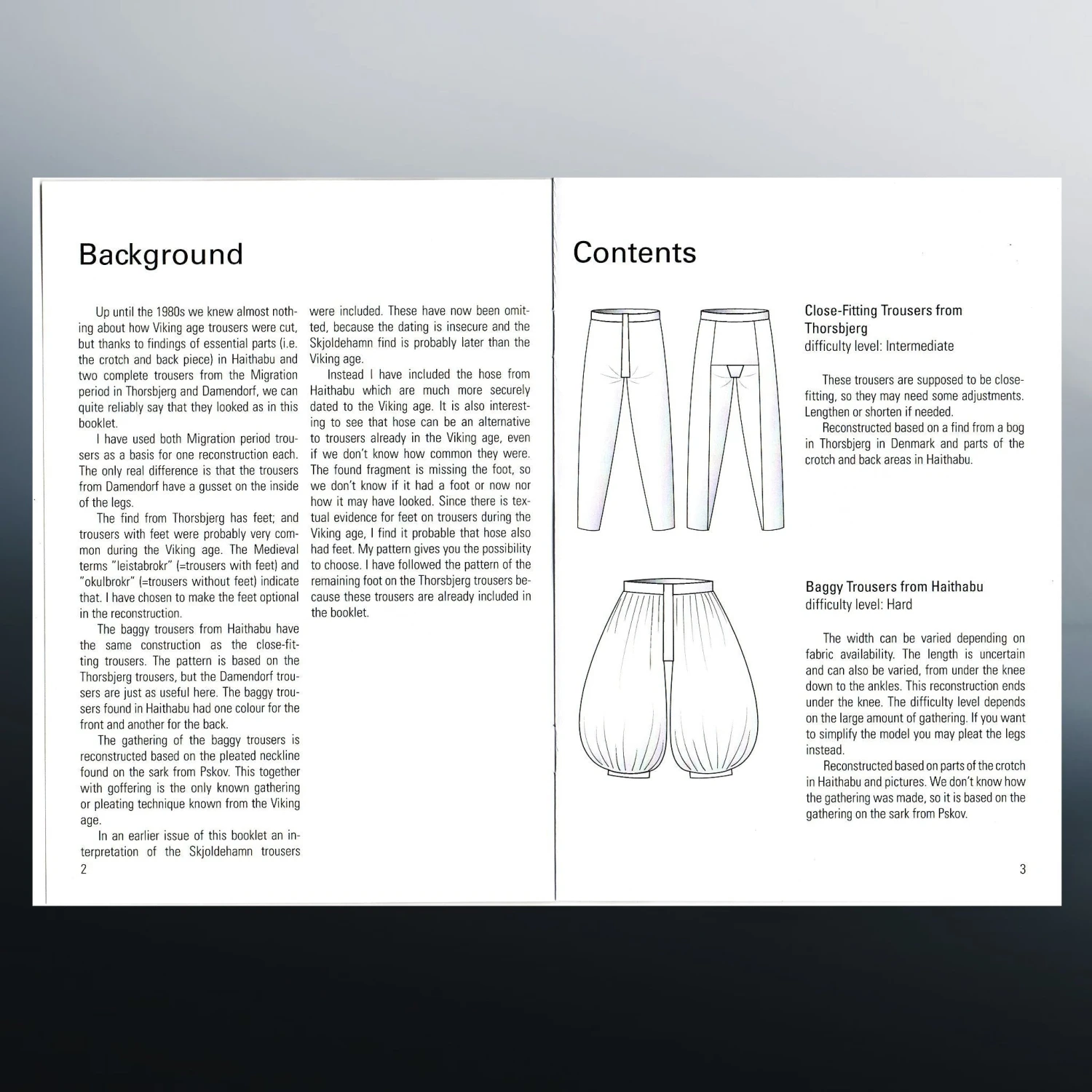 15 Page Step by Step Instruction Booklet for Making Replica Viking Trousers.