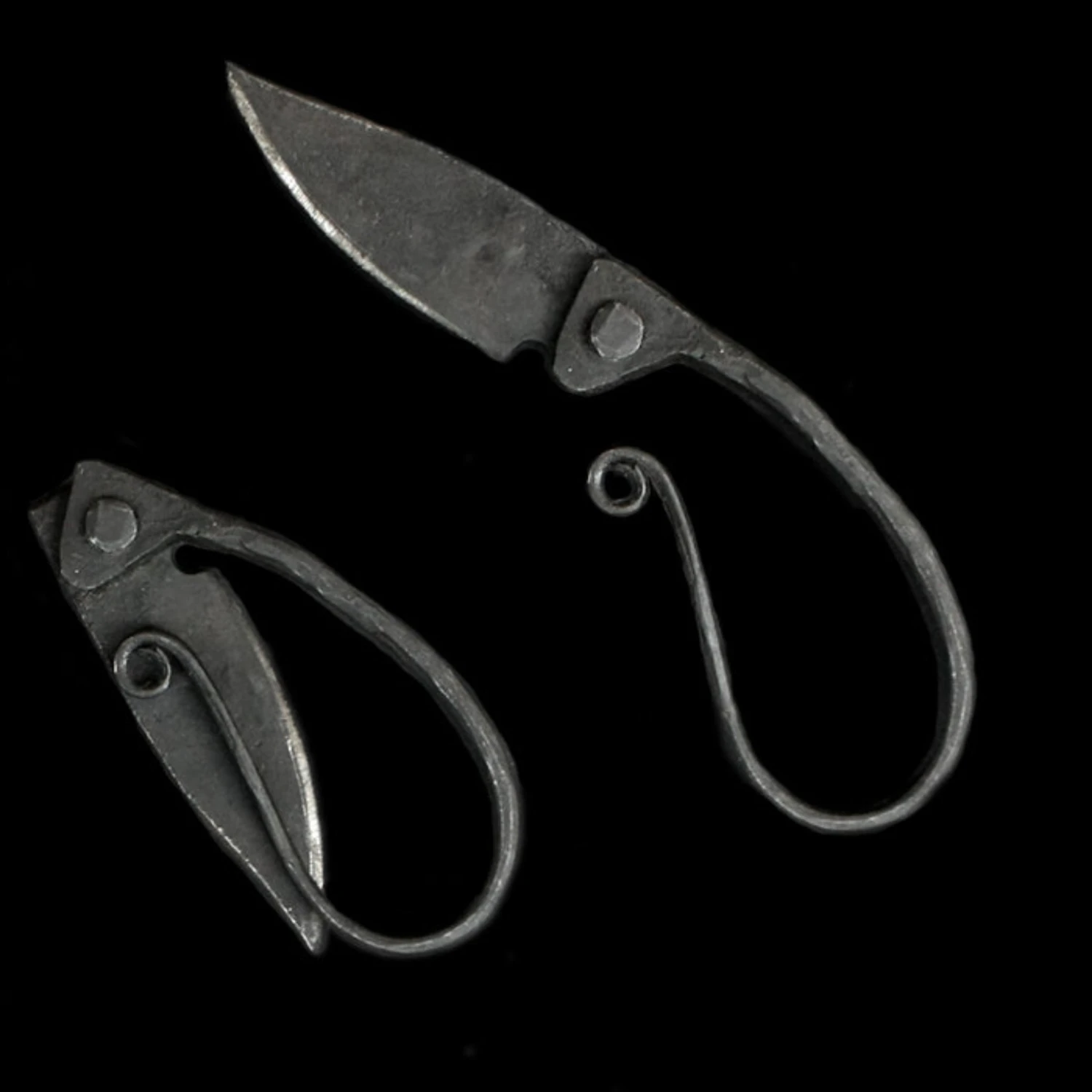 Replica knife in use from Iron Age to Viking times. Hand-Forged steel Viking knife. Semi-sharp steel blade. Great for eating, skinning, feasting, leatherwork & other crafts. Although the shape is based on actual grave finds, the folding mechanism is a modern addition, but makes it more practical to store without needing a sheath and a handy size to fit in your pouch / pocket.